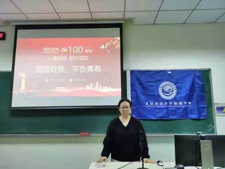 为深入学习贯彻习近平总书记“七一”重要讲话精神,教育引导新时代团员青年继承并发扬伟大建党精神,争当中华民族伟大复兴的先锋力量, 11月6日下午,心理学院在主南楼214教室开展“强国有我,不负青春”主题团日活动。此次活动由心理学院2020级团支书安宇主持,辅导员李杨和心理学院全体研究生参加。