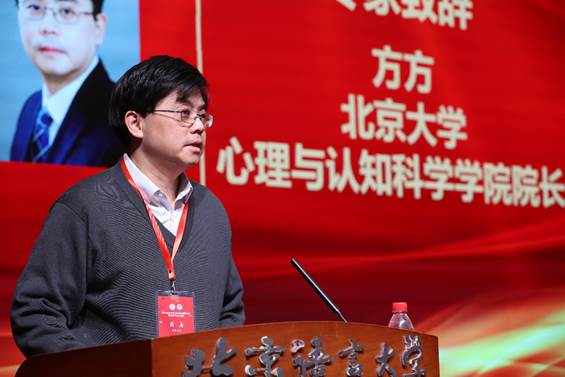 方方教授在致辞中强调北京大学心理学科的发展对北京语言大学心理学科的发展有三点启示:一是紧扣国际学术发展前沿,二是注重学科交叉的发展,三是服务国家社会的重大需求。他指出,现在北京语言大学的心理学科站在历史的新起点上,开始了新的长征路和新的使命,表示将全力支持北语心理学院的发展,愿意和北语心理学院携手共进,努力奋斗,为中国心理学事业的发展做出更大的贡献。