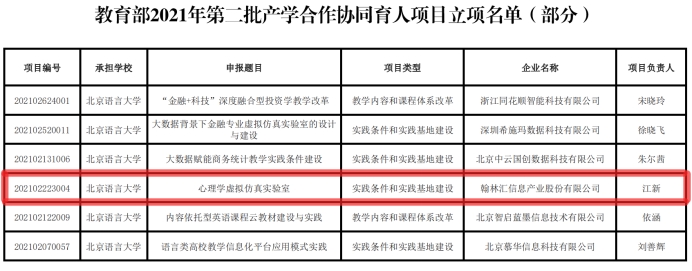 2021年12月15日,教育部公布了2021年第二批产学合作协同育人项目立项名单。心理学院江新教授主持申报的“心理学虚拟仿真实验室”项目获批立项。
