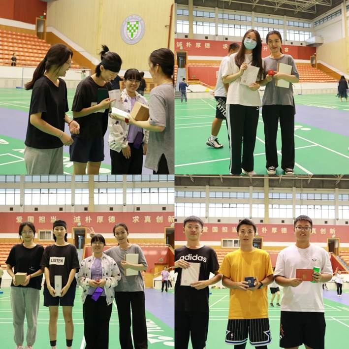 比赛的最后,辅导员李杨老师向各项比赛前三名的同学颁发了奖品,所有参与比赛的同学也得到了北语纪念明信片,大家一起在体育馆合影留念。