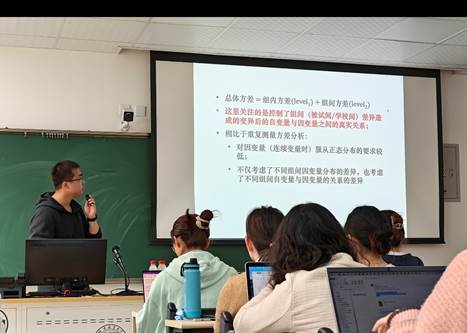2023年3月22日,心理学院主办的“心理学实验数据分析方法系列讲座之——线性混合模型”学术讲座顺利举办。本次讲座邀请北京师范大学博士后张光耀主讲,心理学院药盼盼老师主持。讲座吸引了近100名校内外师生前来参加。