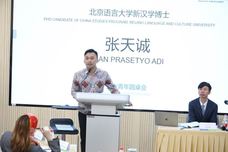 心理学院博士生张天诚应邀参加了此次会议,并在亚太青年圆桌会做了报告,与来自越南、柬埔寨和蒙古等国的亚太青年学者一同展开了研讨。张天诚为来自印度尼西亚的新汉学计划博士生,是由江新教授指导的2021级语言学及应用语言学专业博士生。