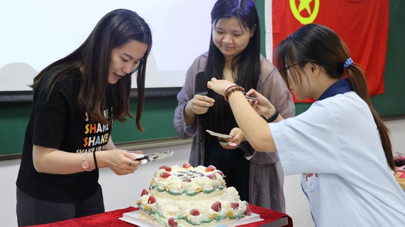 大会接近尾声,为庆祝团总支建立一周年,学院准备了蛋糕,由每位部长盛给各自的部员,大家一边吃着蛋糕一边做游戏,留下美好的回忆。在欢声笑语中,本次述职大会圆满落幕。