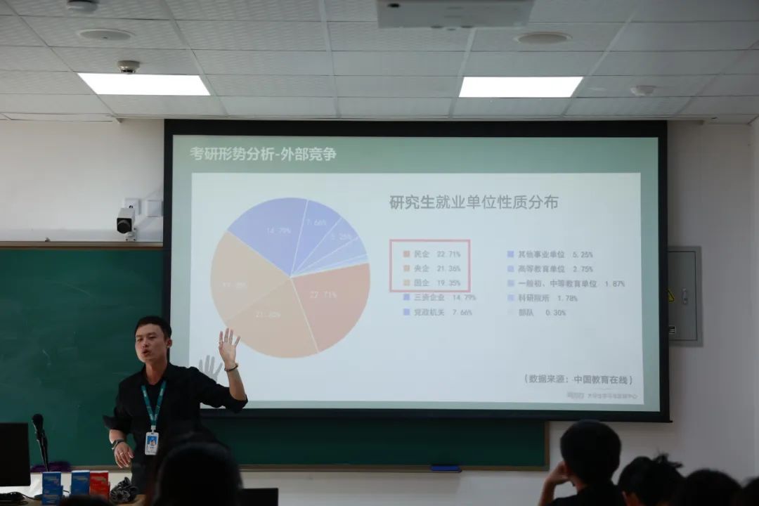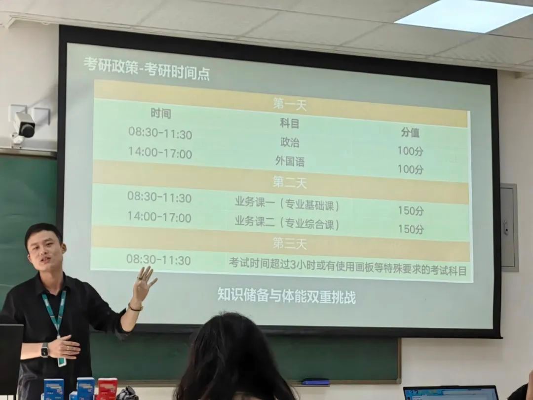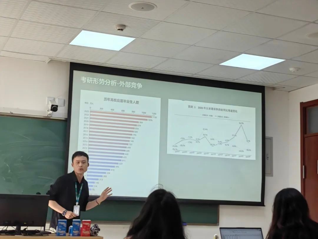 高龙明讲师首先分享如何选择报考院校以及如何规划整个备考的时间,并向在场本科生们强调了坚持与奋斗的重要性。
