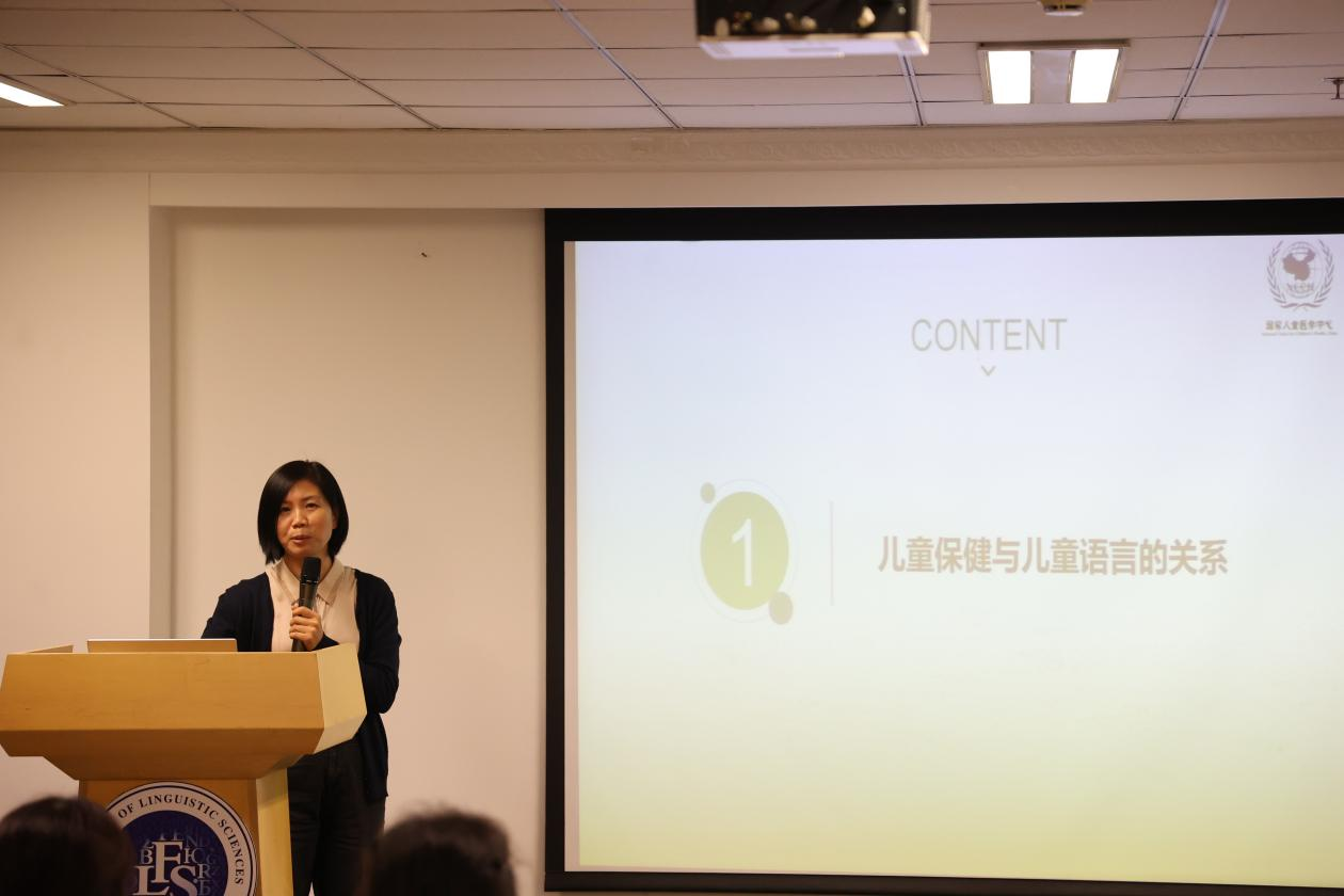 聘任仪式结束之后,儿童医院梁爱民主任应邀做了题为“儿童保健与儿童语言研究的机遇”的报告。