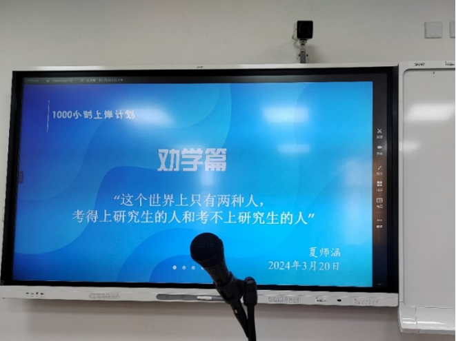 夏师涵同学介绍了自己一战两跨、一志愿上岸的经验。她提醒大家考研是一件“选择比努力更重要,风险与机遇并存”的事情,要慎重决定而后全力以赴。接着她提到“有效努力比特别努力更重要”,要培养自己的信息搜集能力、资源整合能力以及自我学习能力。