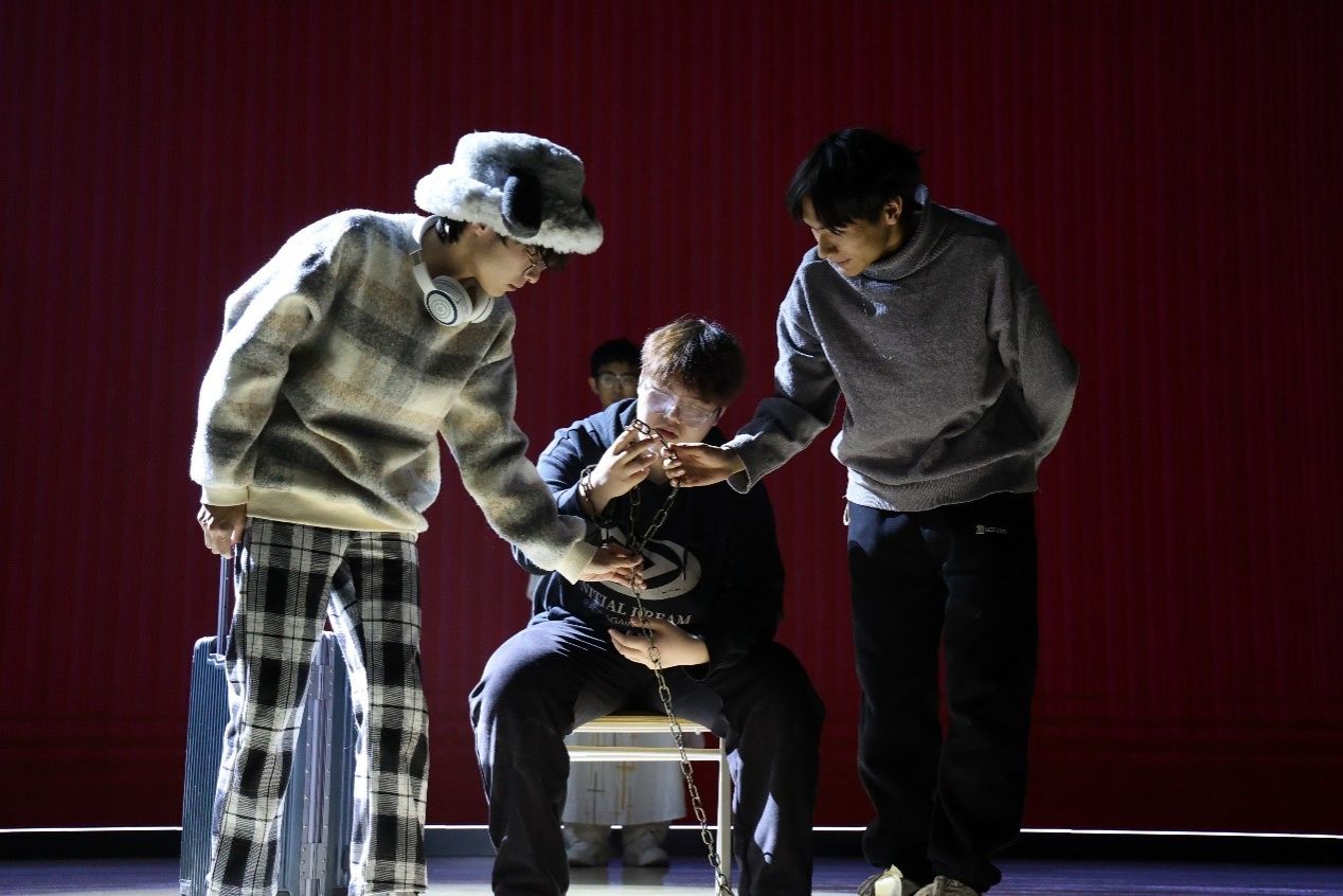 话剧《风声》改编自同名电影《风声》,同学们以出神入化的演技和丰富的道具,刻画了民国年代革命党人大义凛然和义无反顾的形象,表达了对革命先辈们的敬仰。