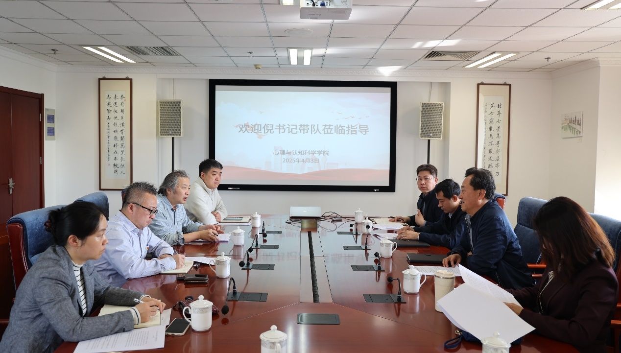 为落实深入贯彻中央八项规定精神学习教育工作安排,4月3日上午,学校党委书记倪海东同志一行到心理与认知科学学院开展调研座谈。党委常委、组织部部长张健,校长助理、学校办公室主任李志坚,人事处处长魏均陪同调研。学院领导班子和教师代表参加了座谈。