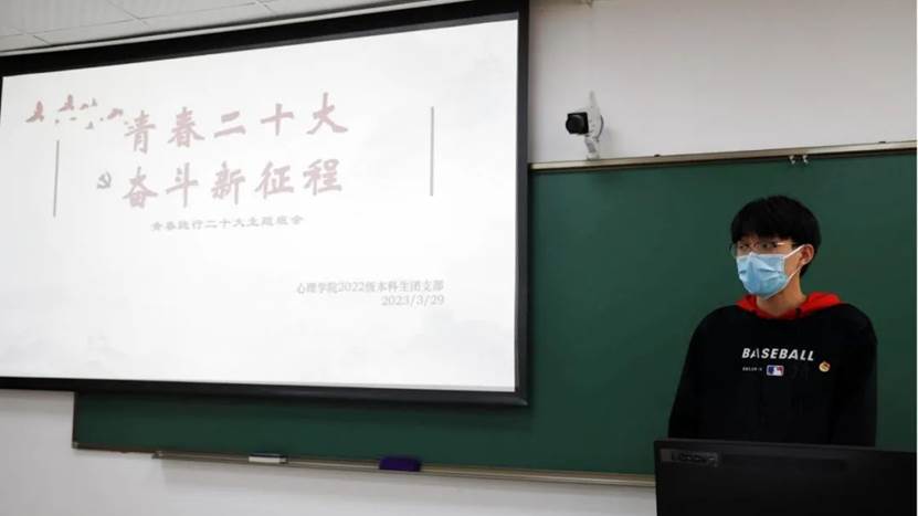 3月29日上午,心理学院2022级本科生团支部顺利开展“青春二十大,奋斗新征程”青春践行党的二十大主题班会。