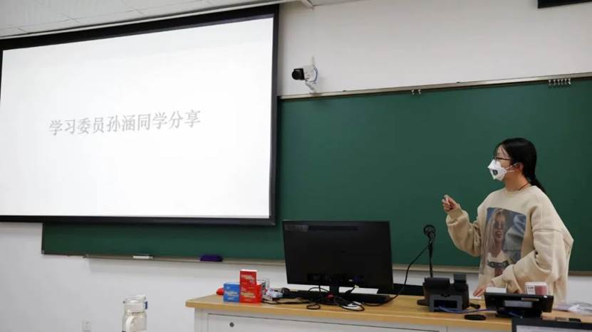 在奋斗的环节,学习委员孙涵先介绍了过去一学期的学习经历,然后再从掌握基础知识、注重社会实践、关注学科前沿三部分向大家分享了她的学习经验。同学们受益匪浅,也积极地分享自己新学期的学习规划。