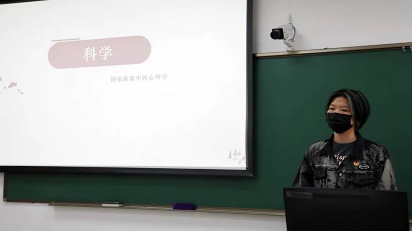 在科学的部分,班长李秦萱为大家介绍了过去十年来国家政策中有关心理学的内容。国家政策的不断更新,让同学们感受到随着时代的变迁,与心理相关的问题不断得到重视,心理学在国家战略中的地位也越来越重要,这也坚定了同学们对心理学发展前景的信心。