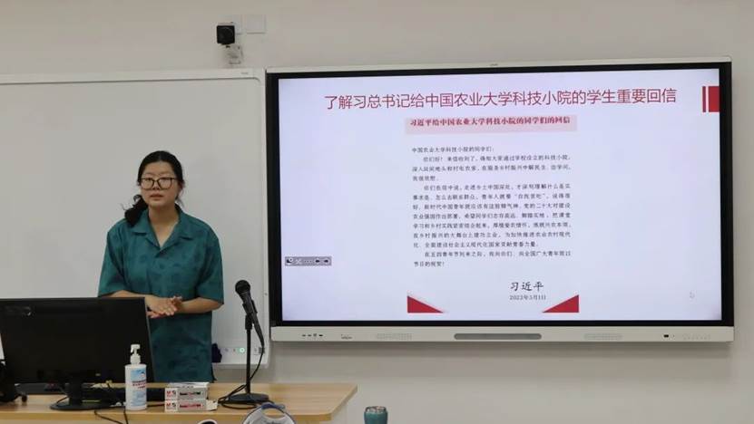 今天我们深入学习领会了习近平总书记给中国农业大学科技小院学生回信的精神,我认识到了我们也需要扎根基层,把学习的知识融入中国特色社会主义建设,为基层建设做出自己的贡献。