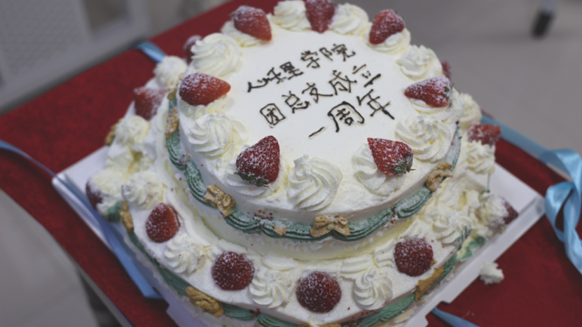 大会接近尾声,为庆祝团总支建立一周年,学院准备了蛋糕,由每位部长盛给各自的部员,大家一边吃着蛋糕一边做游戏,留下美好的回忆。在欢声笑语中,本次述职大会圆满落幕。